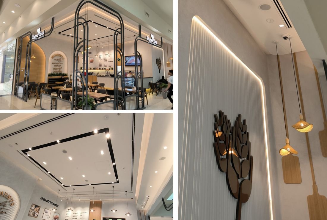 This Papparoti outlet was located in a mall more than 150 km away from Dubai, transforming the project into a logistically demanding assignment. The scope included installing a decorative gypsum ceiling with detailed patterns and completing all tile flooring, all under tight deadlines and restrictive working hours. Limited local material availability added further complexity.
